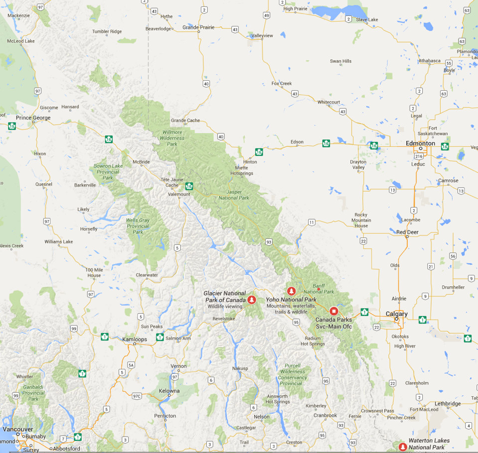The Canadian Rockies comprise the Canadian segment of the North American Rocky Mountains. They are the eastern part of the Canadian Cordillera, which is a system of multiple ranges of mountains which runs from the Canadian Prairies to the Pacific Coast. The Canadian Rockies mountain system comprises the southeastern part of this system, laying between the Interior Plains of Alberta and Northeastern British Columbia on the east to the Rocky Mountain Trench of BC on the west. The southern end borders Idaho and Montana of the USA. In geographic terms the boundary is at the Canada/US border, but in geological terms it might be considered to be at Marias Pass in northern Montana. The northern end is at the Liard River in northern British Columbia.